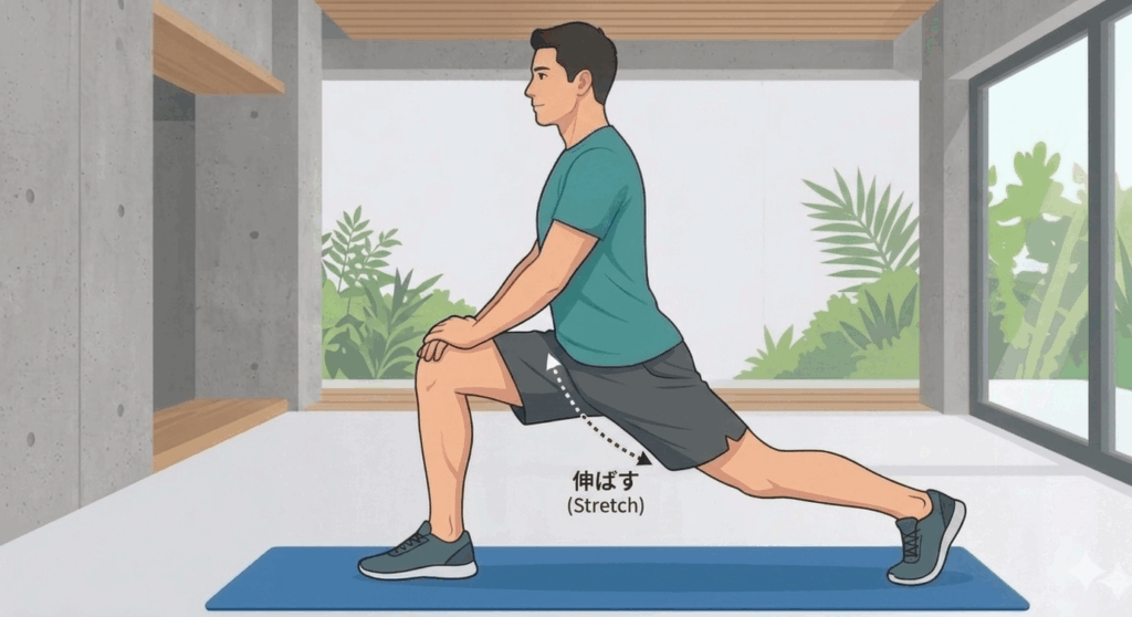 ストレッチ①:腸腰筋をゆるめる“ひざ立ちストレッチ”